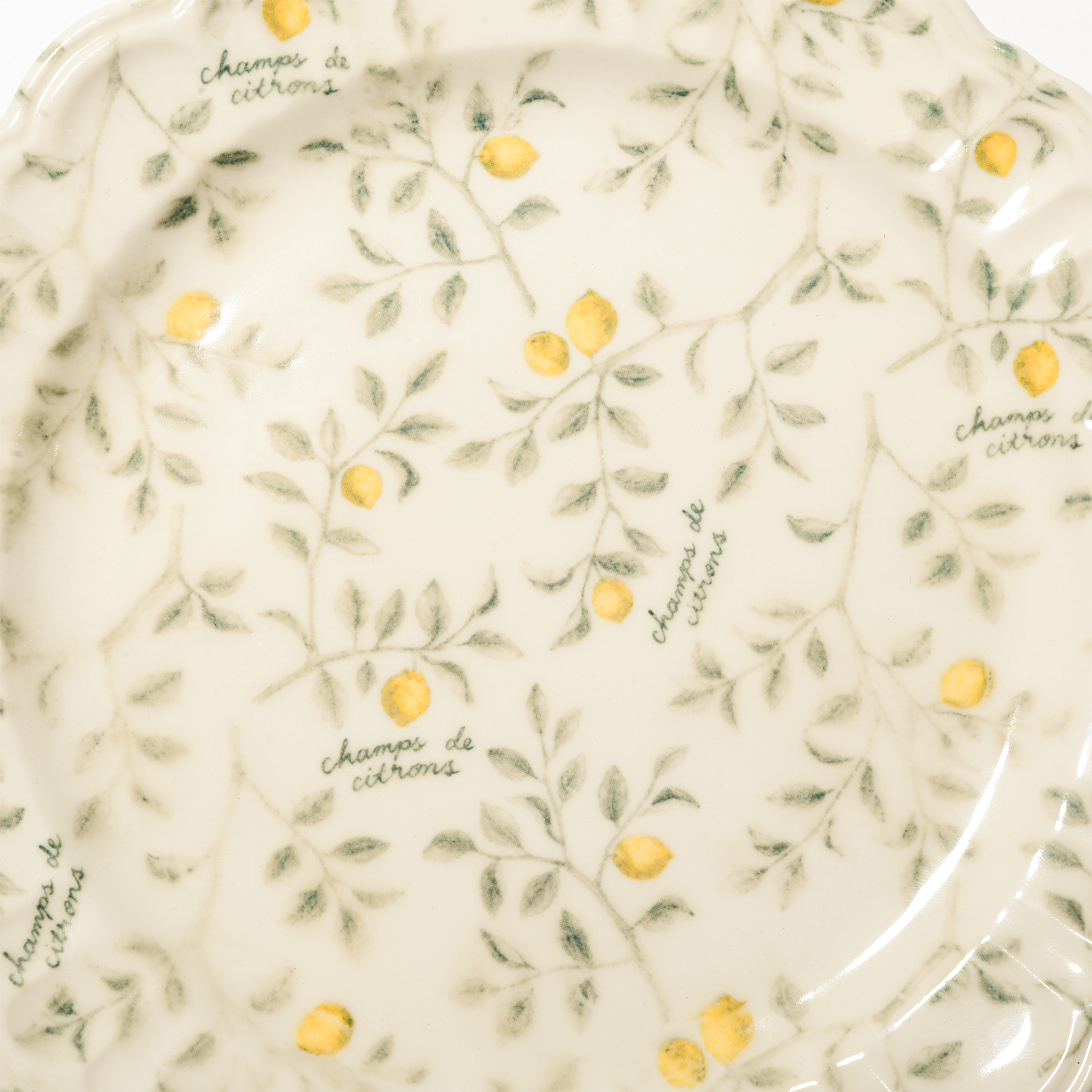 手作業で貼り付け、釉薬をかけて焼成することで、にじみや濃淡、かすれが生まれ、手描きのスケッチのような味わいが引き立ちます。