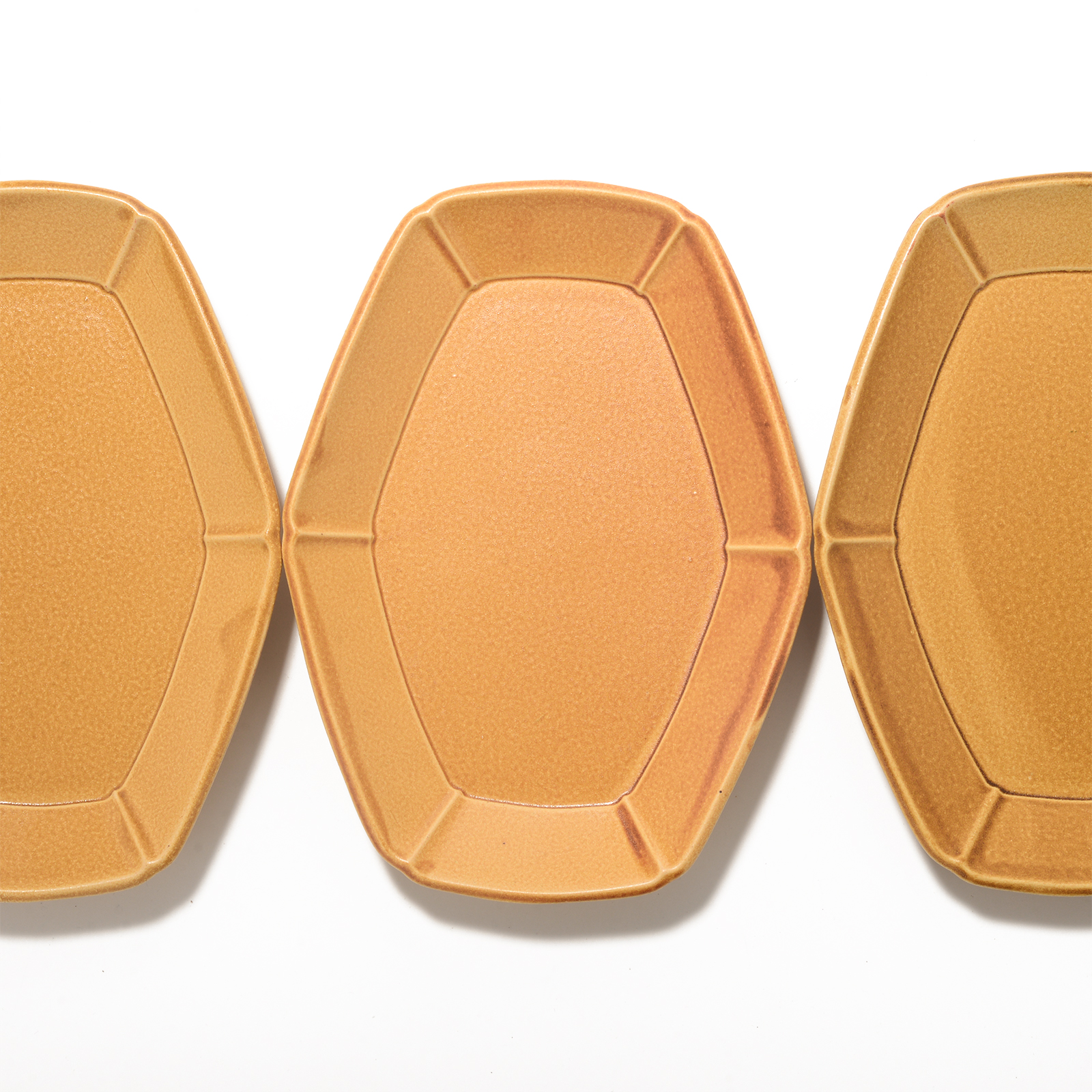 横に広がる六角形のフォルムはテーブル上で配置がしやすく、主菜・副菜・ご飯や汁物など、他のうつわと並べたときに美しいバランスを保ってくれます。