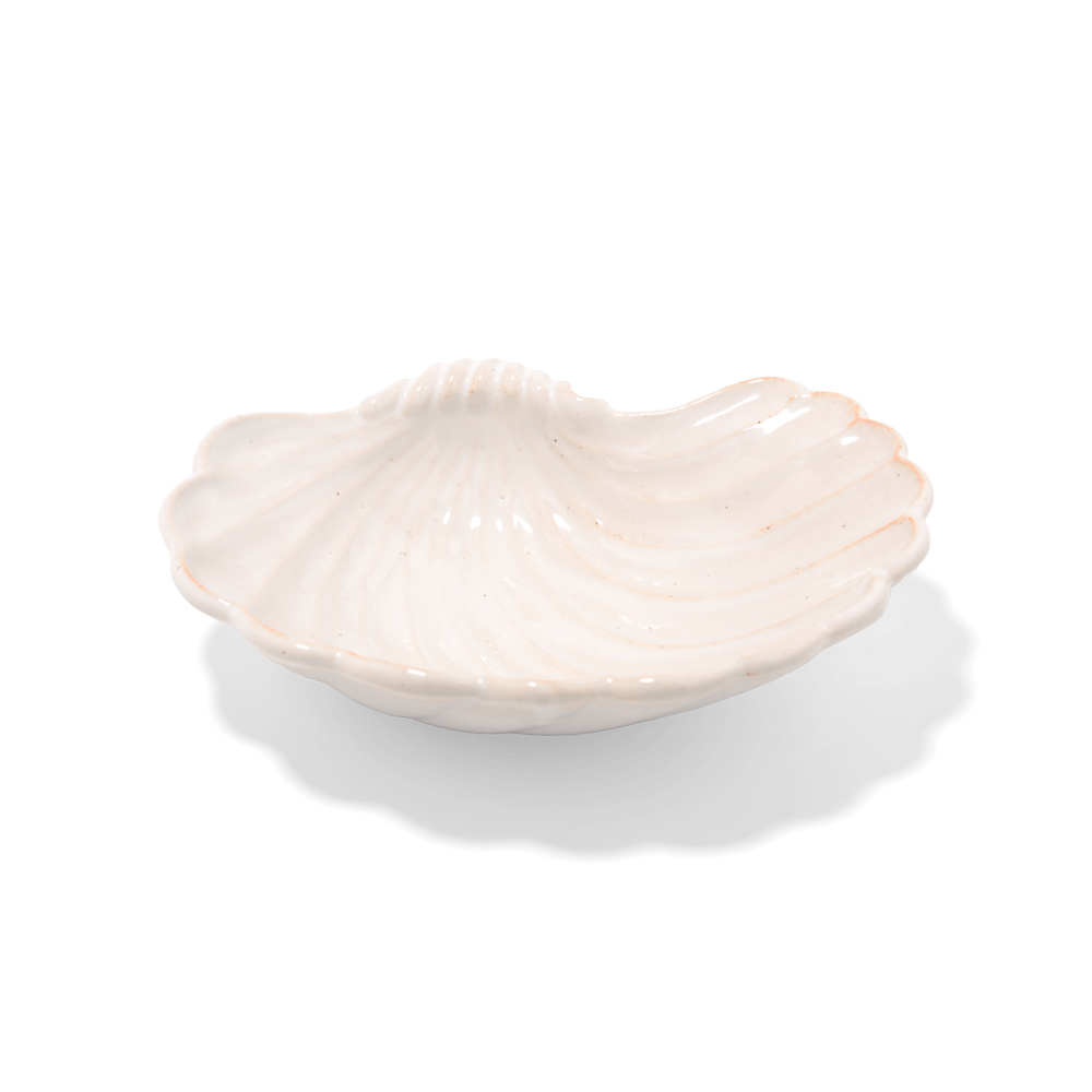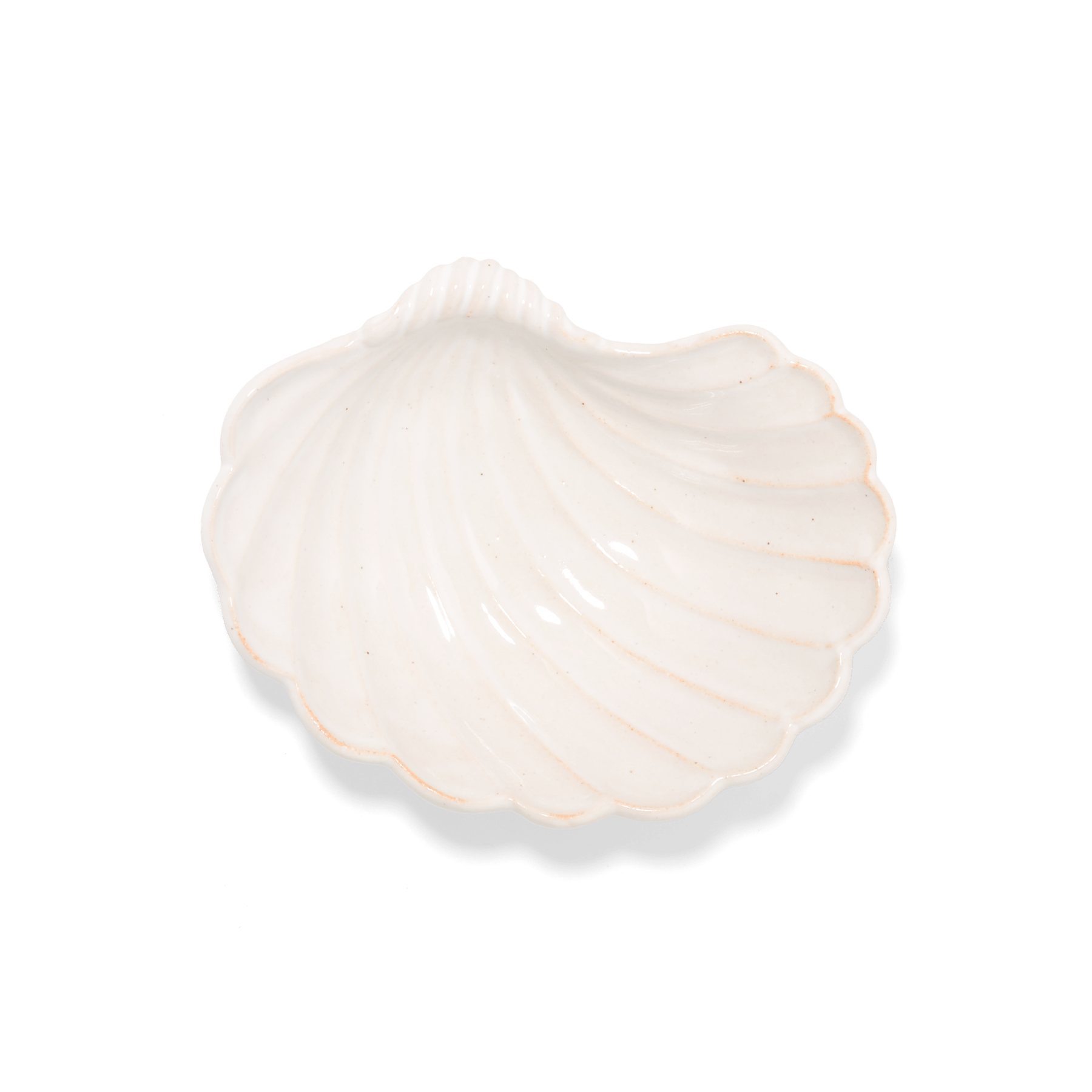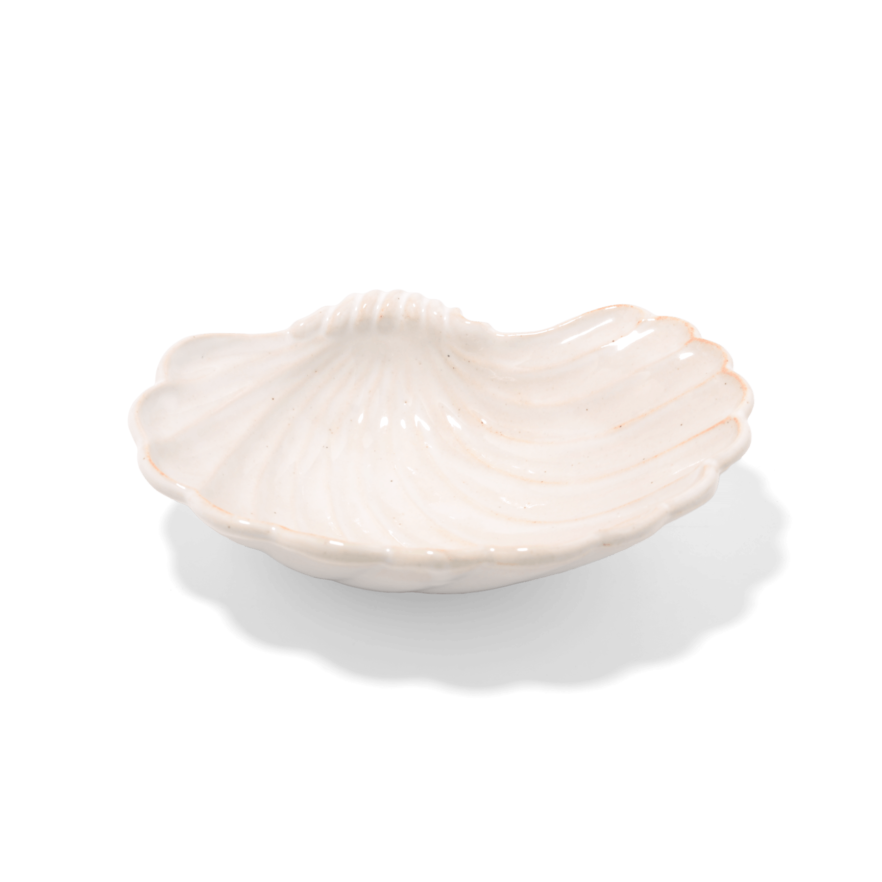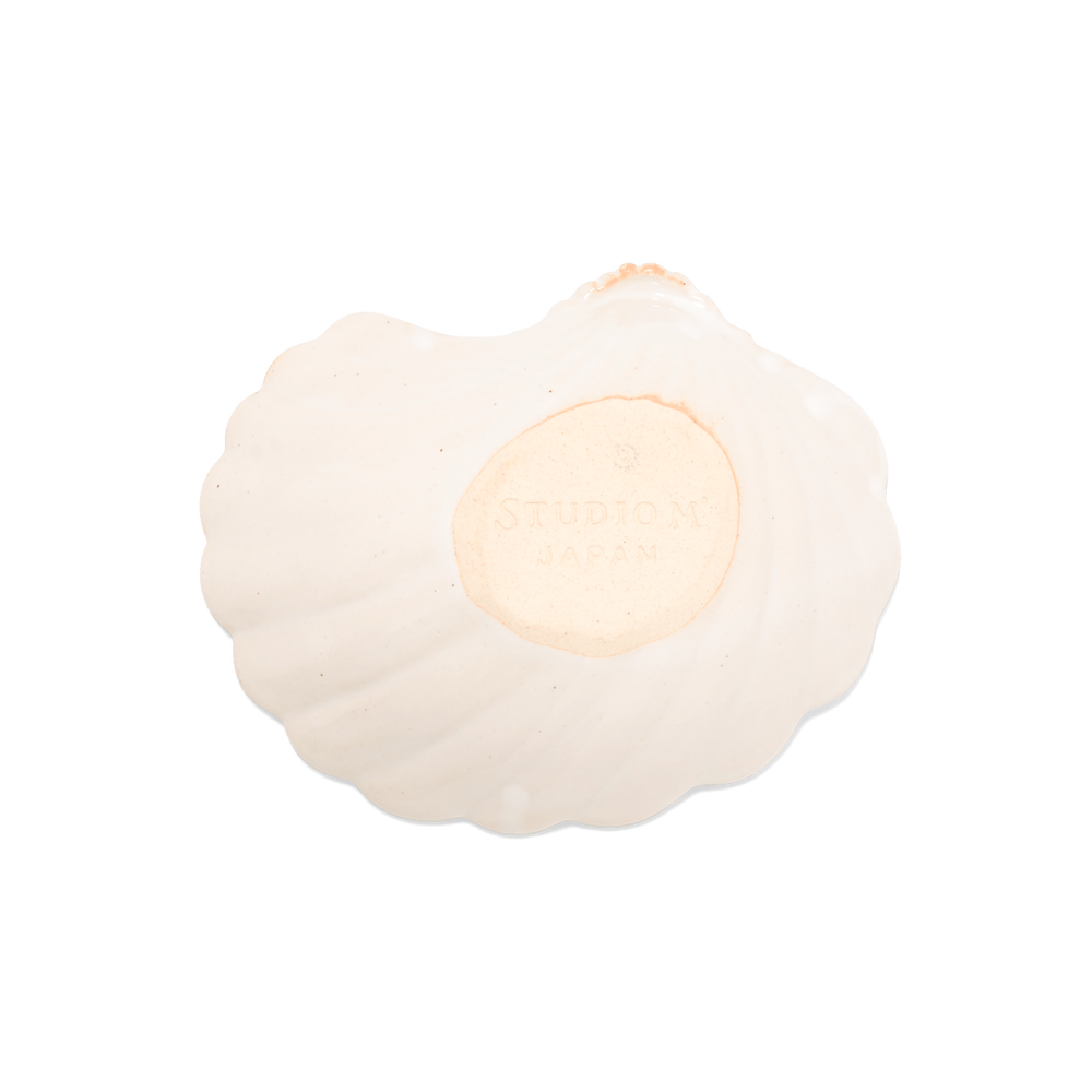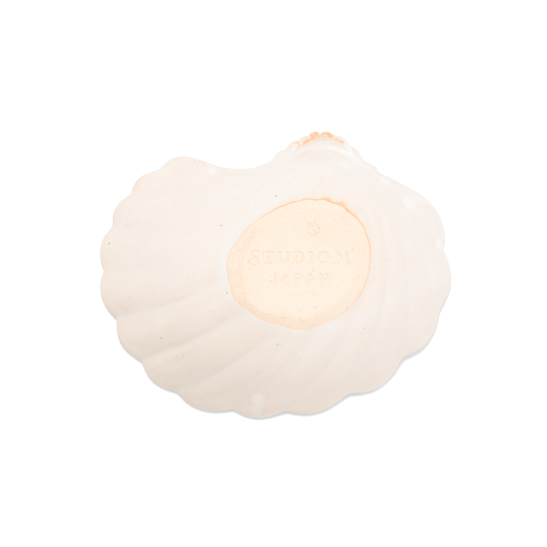 釉薬の溜まりによる濃淡が美しく、貝殻モチーフの有機的な形とよく調和します。