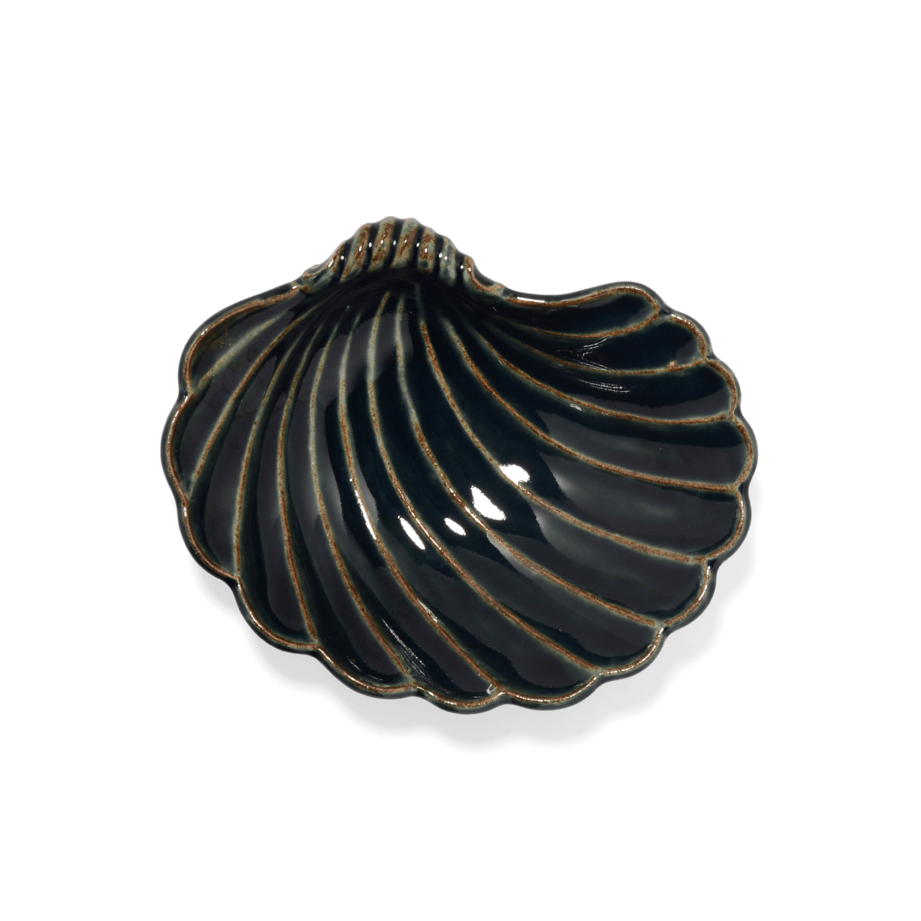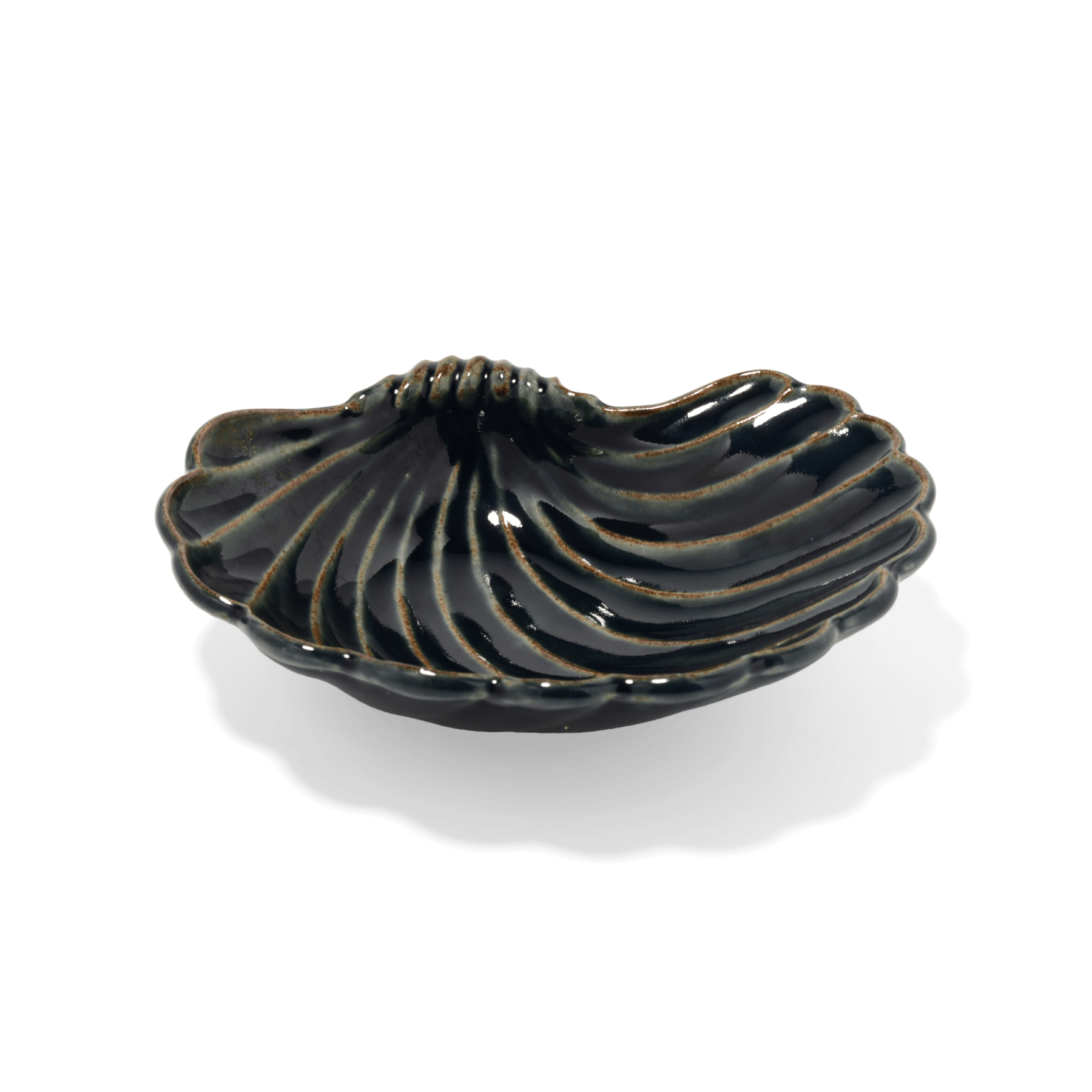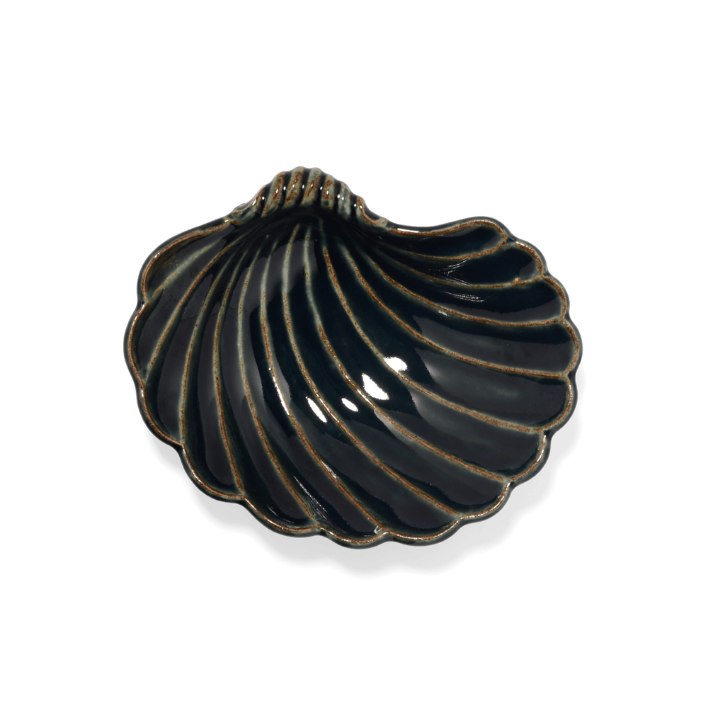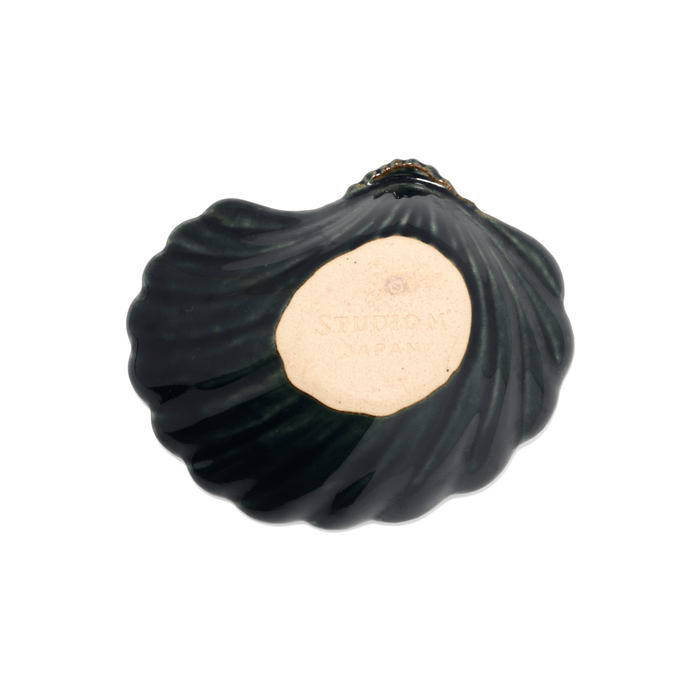 釉薬の溜まりによる濃淡が美しく、貝殻モチーフの有機的な形とよく調和します。