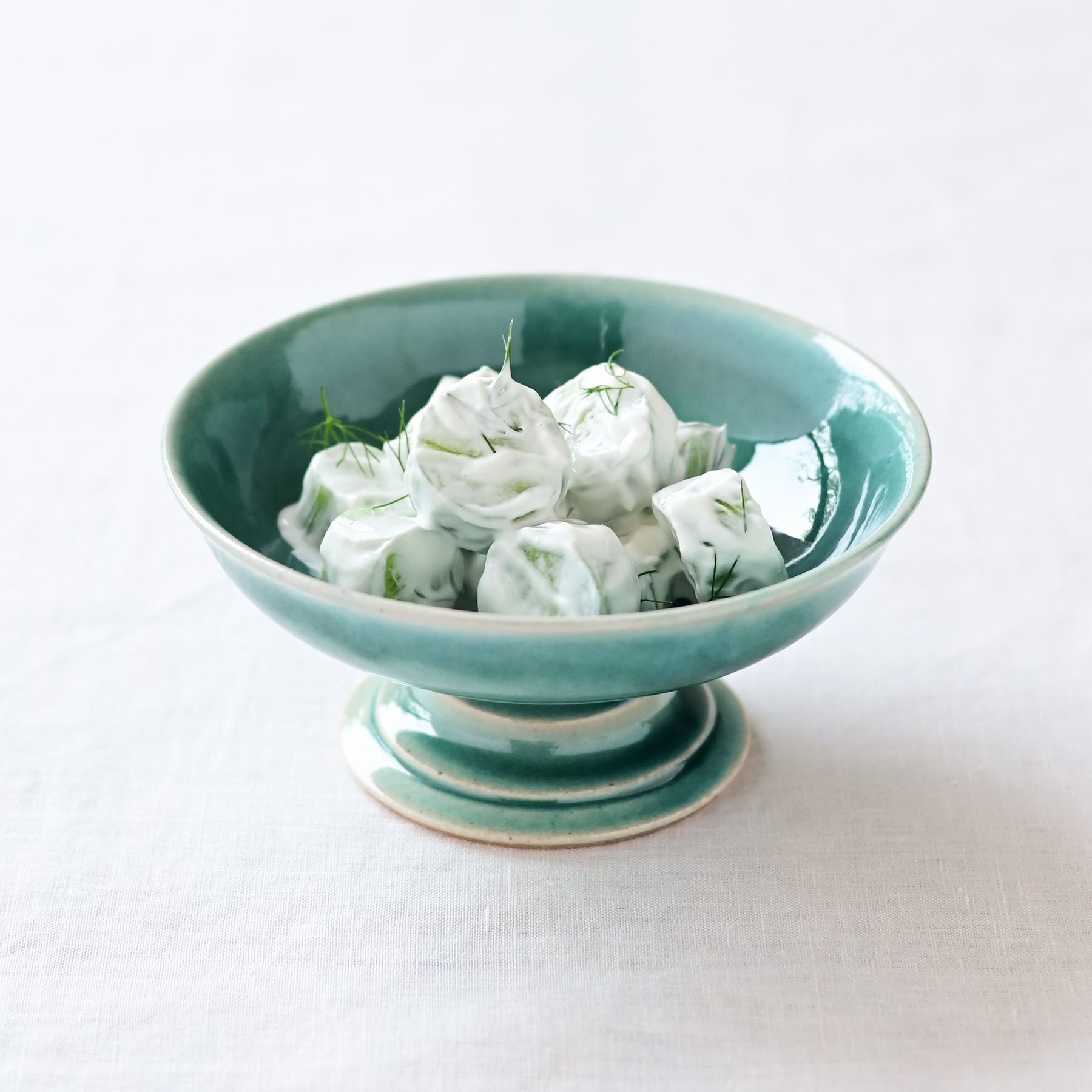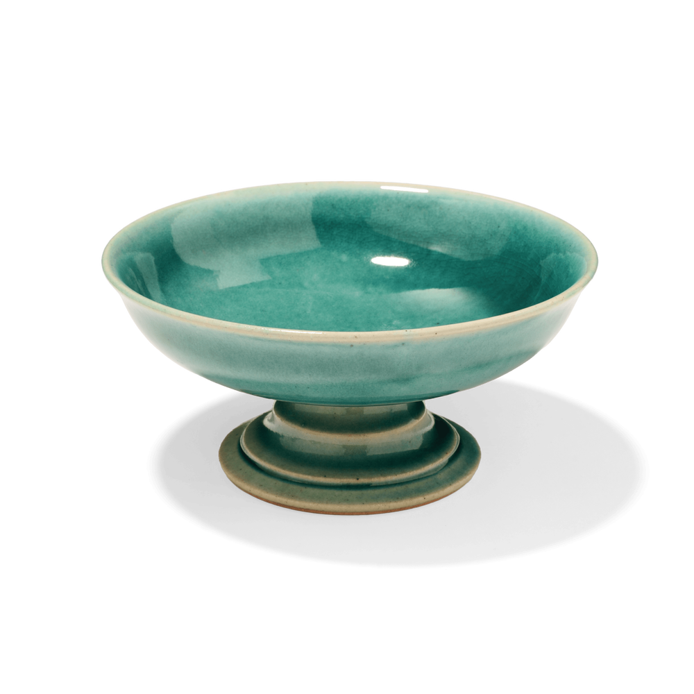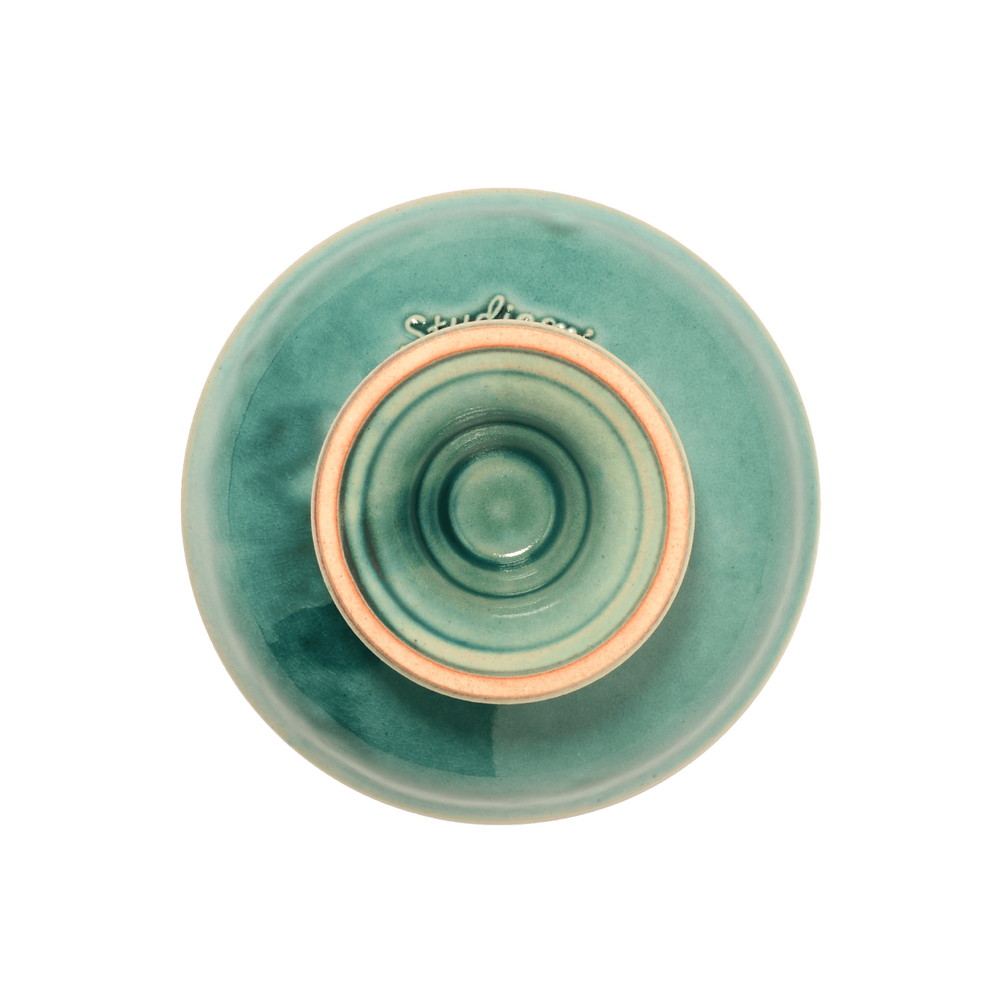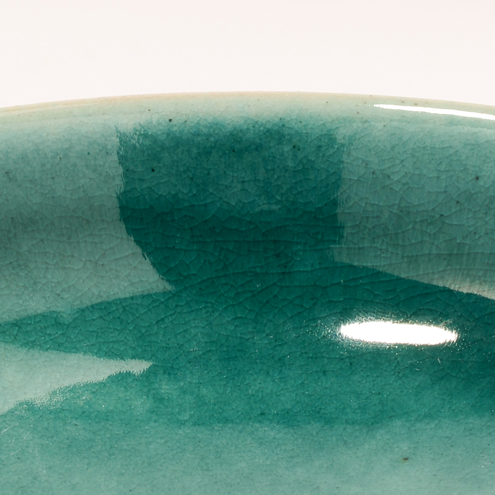 台座部分には控えめな段差を装飾として施し、釉薬による色の変化を引き立てています。