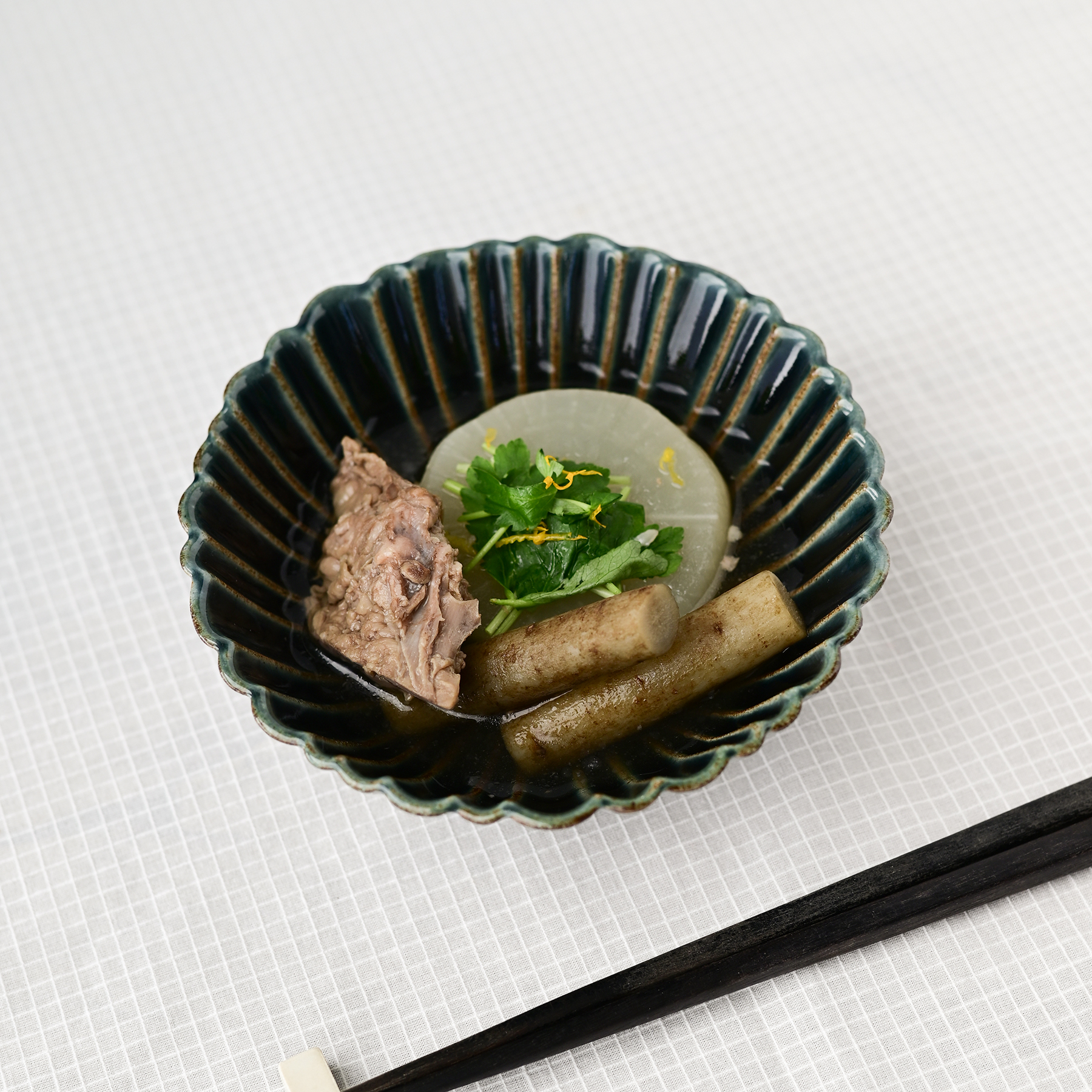 花びらの幅や縁のラインに変化を持たせたデザインは、自然な動きと上品さをあわせ持ち、料理をより特別に引き立ててくれます。