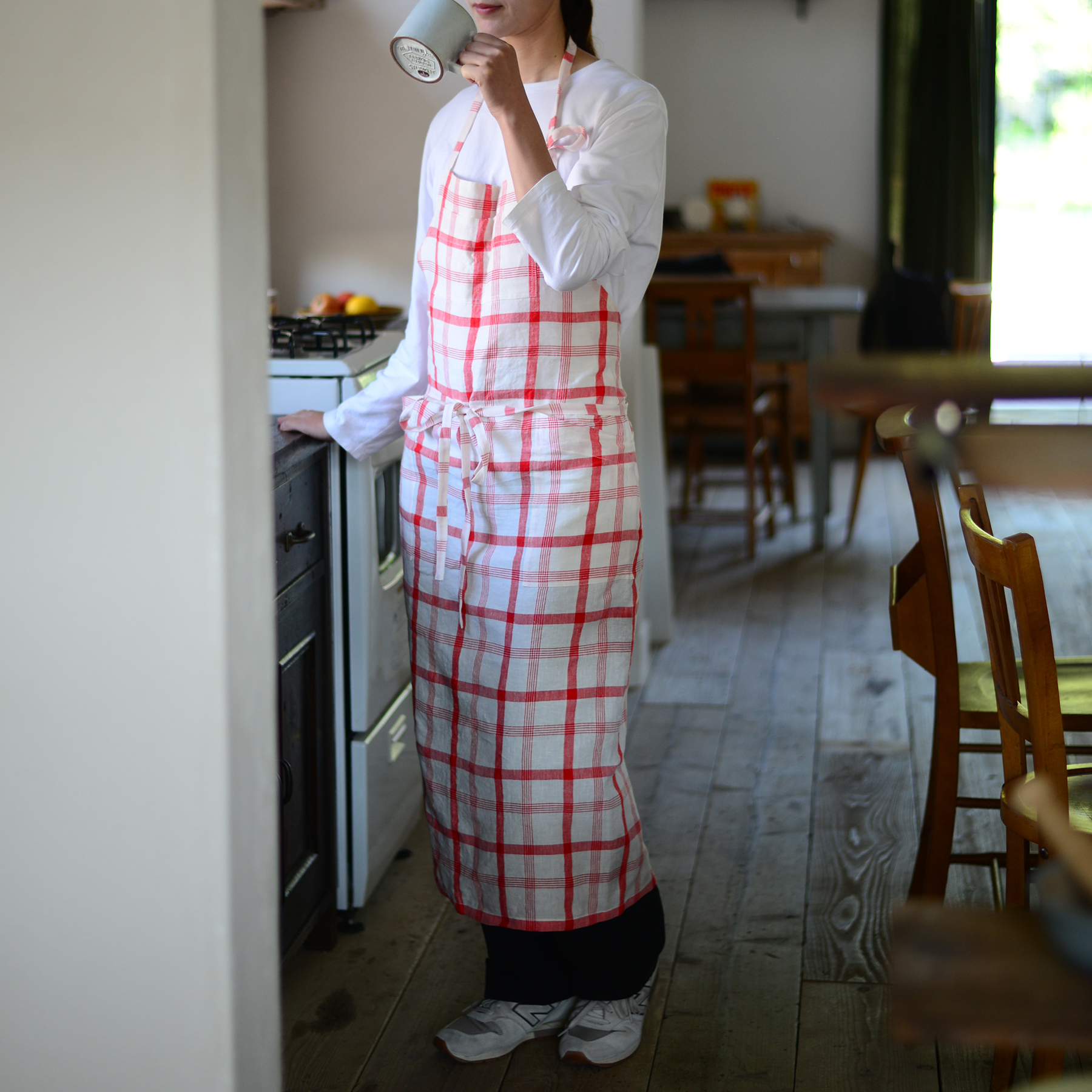 ・洗濯後は3%程縮みが生じます。・洗濯を繰り返すことで少しずつ色褪せて柔らかい風合いになります。・生地の使用部分によりチェック柄の位置が異なります。・タグのデザインが変更になる場合があります。・エプロンを洗濯の際は、洗濯ネットをご使用ください。・胸元と両サイドにポケットが付きます。