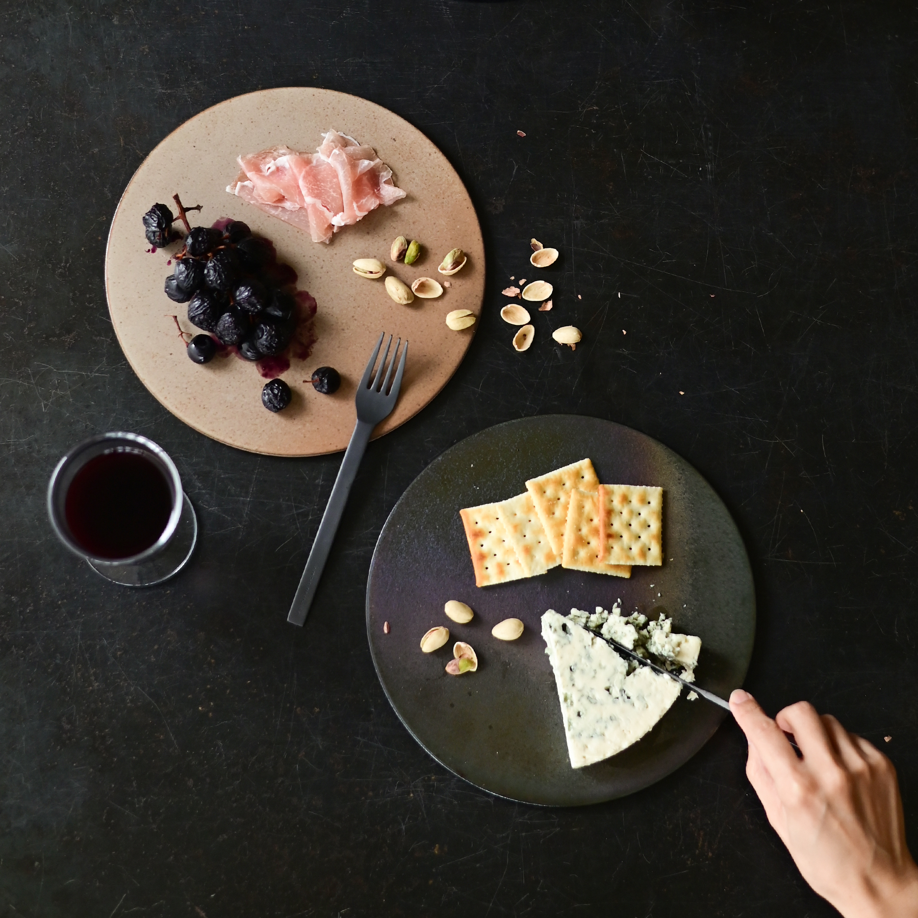φ235mmのプレートは、前菜やデザート、チーズ盛り、小さなワンプレートやカジュアルなメインプレートとして幅広く活躍します。