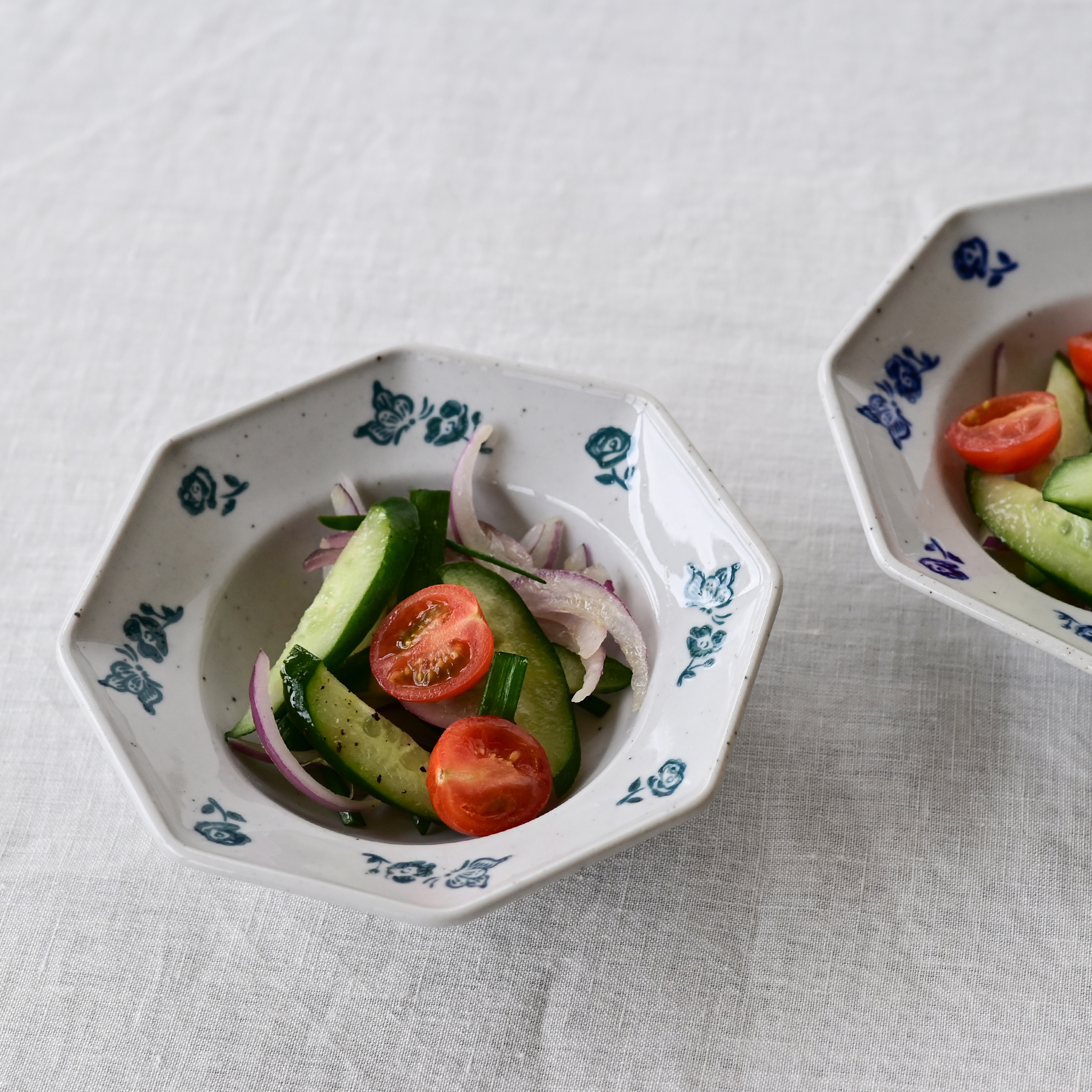 ヴィンテージ食器の八角形から着想を得て、テーブルのアクセントとなる一枚に仕上げています。