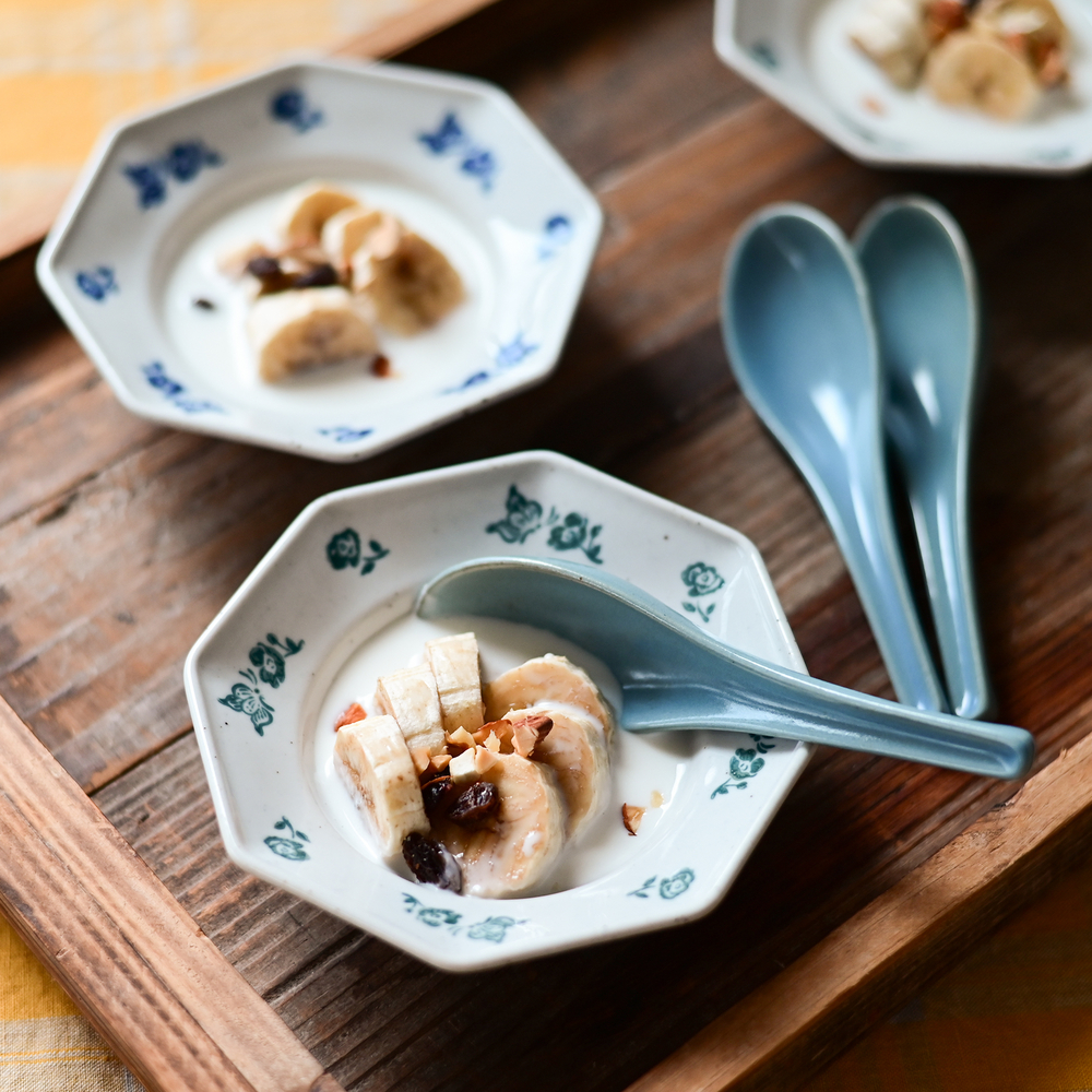 花と蝶のモチーフがさりげないアクセントとなり、食卓に楽しさと彩りを添えてくれます。