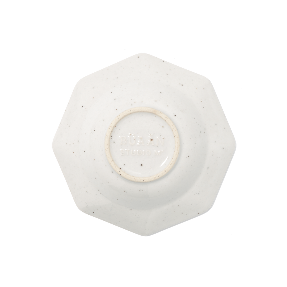 八角形の形状は角をやわらかく仕上げ、リムも広めに取ることで、全体にやさしい印象に。