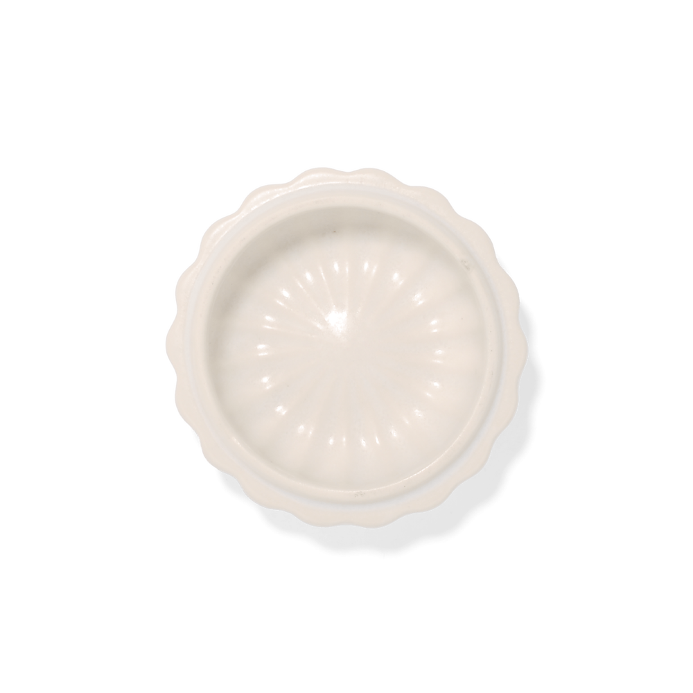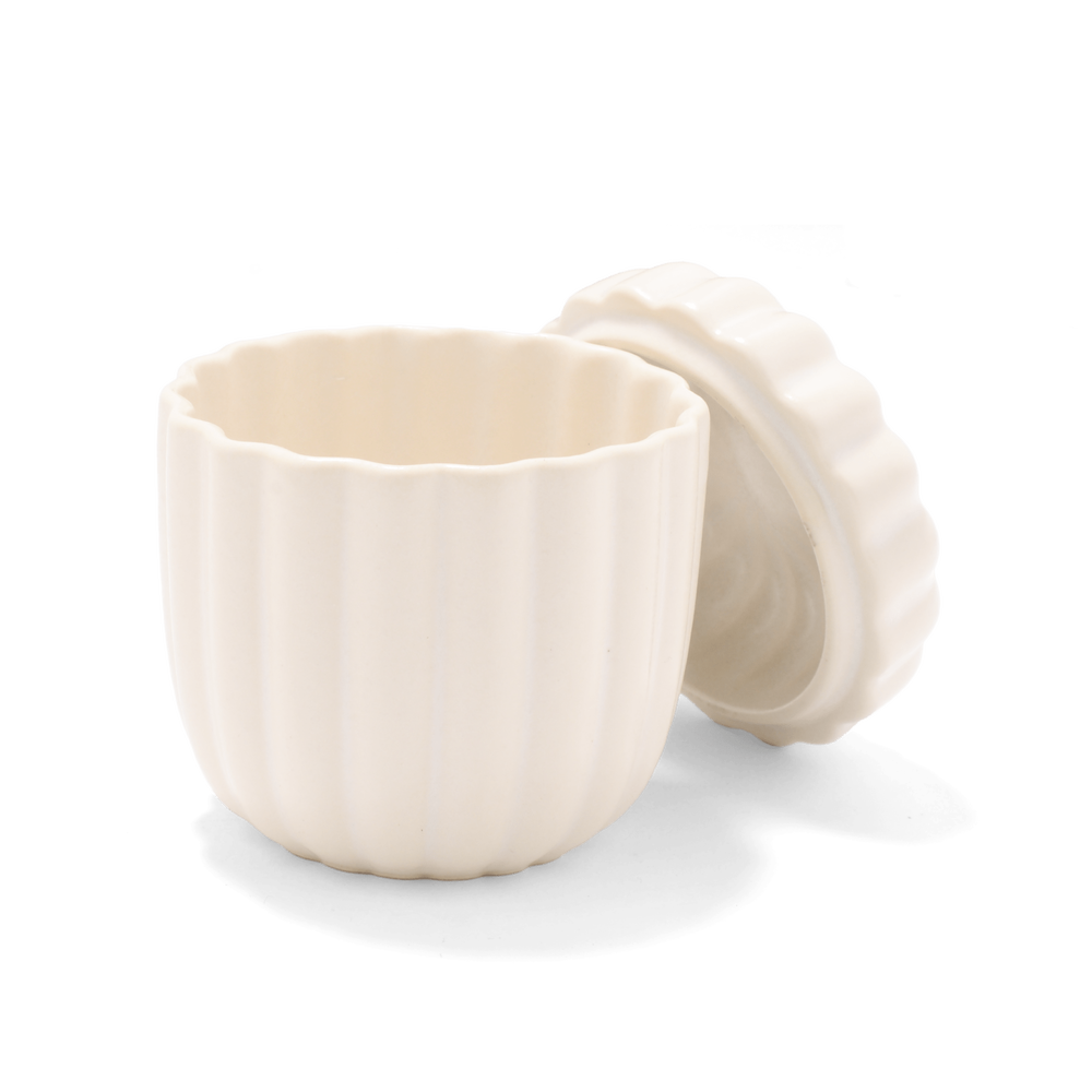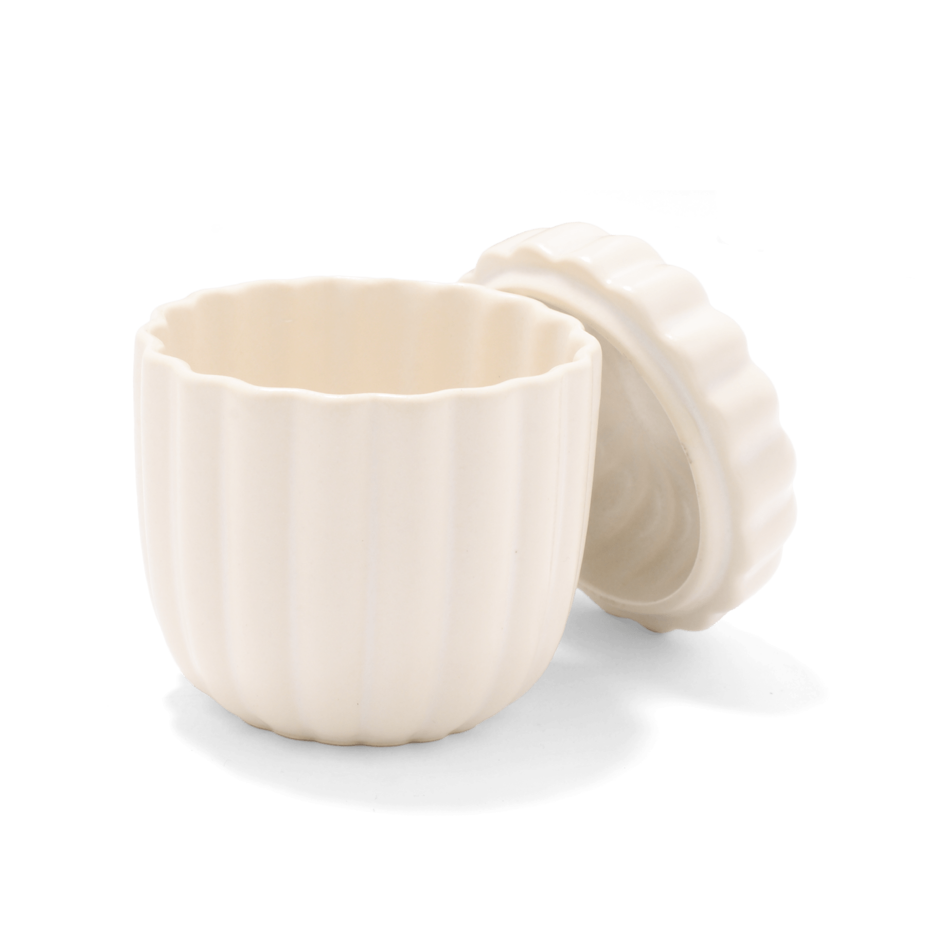 蓋はほどよい重みがあり、手に収まるサイズ感を意識しました。中央に窪みがあり、やわらかな印象です。