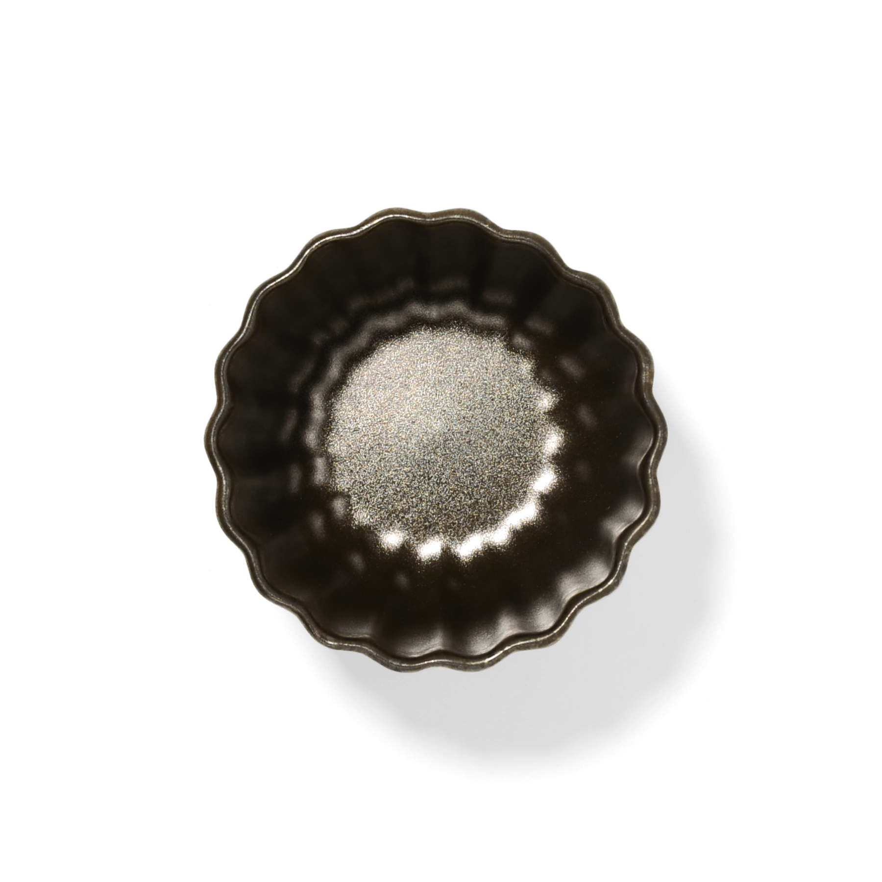 窯変黒は、金属釉による艶ときらめきが特徴。料理とのコントラストを楽しめます。