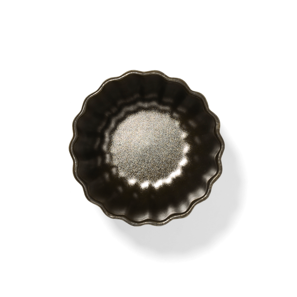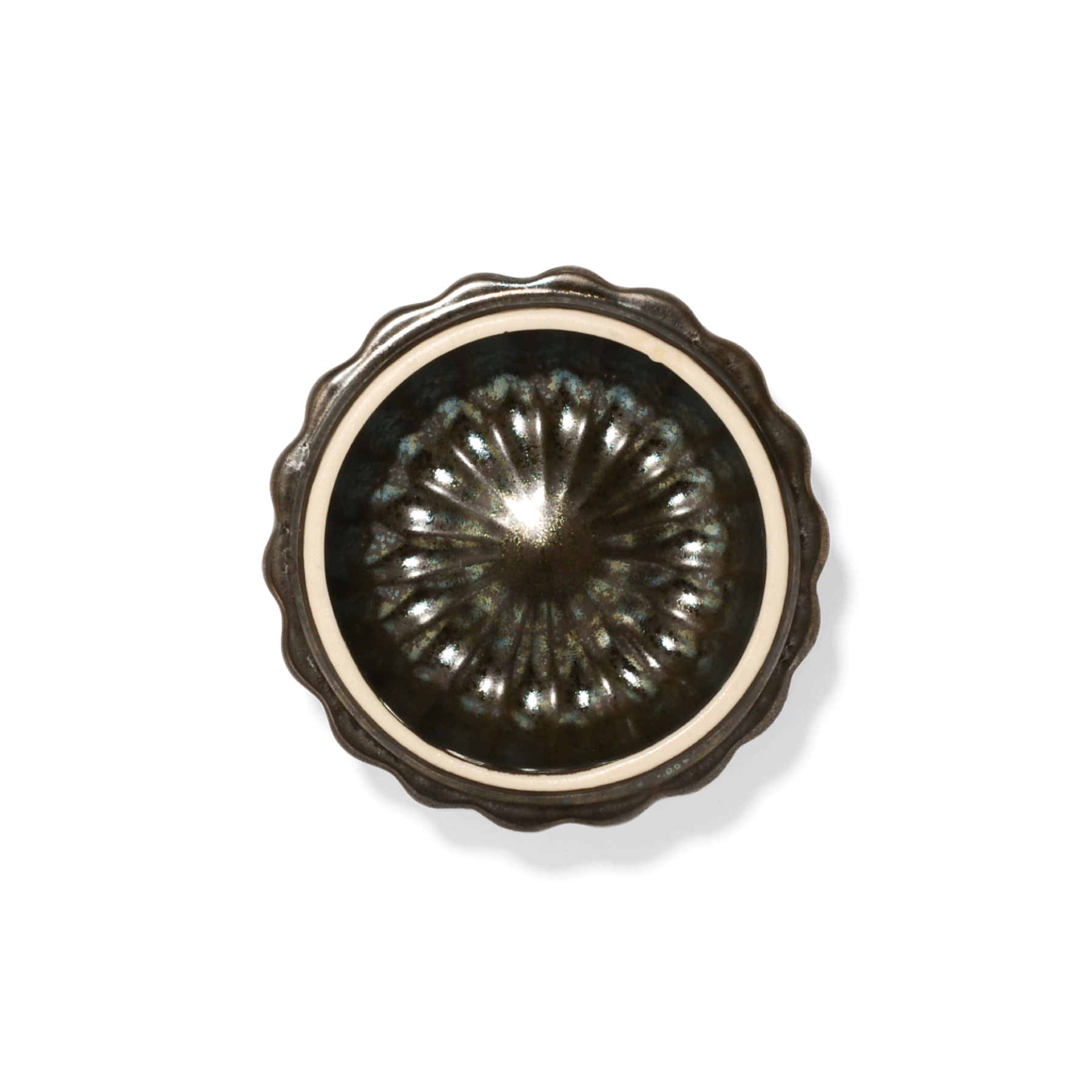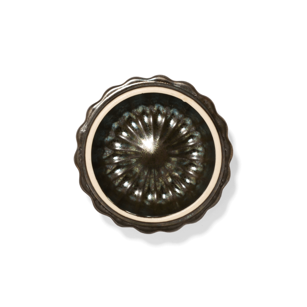 窯変黒は、金属釉による艶ときらめきが特徴。料理とのコントラストを楽しめます。