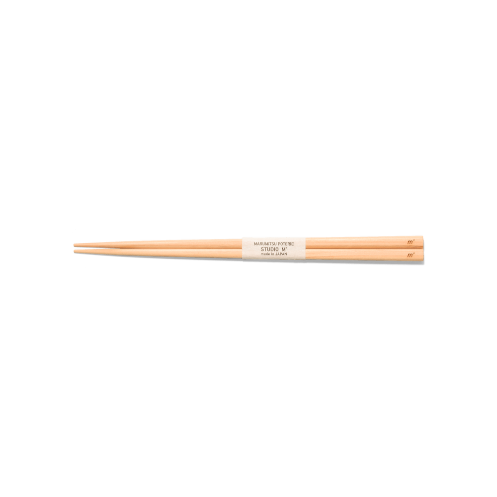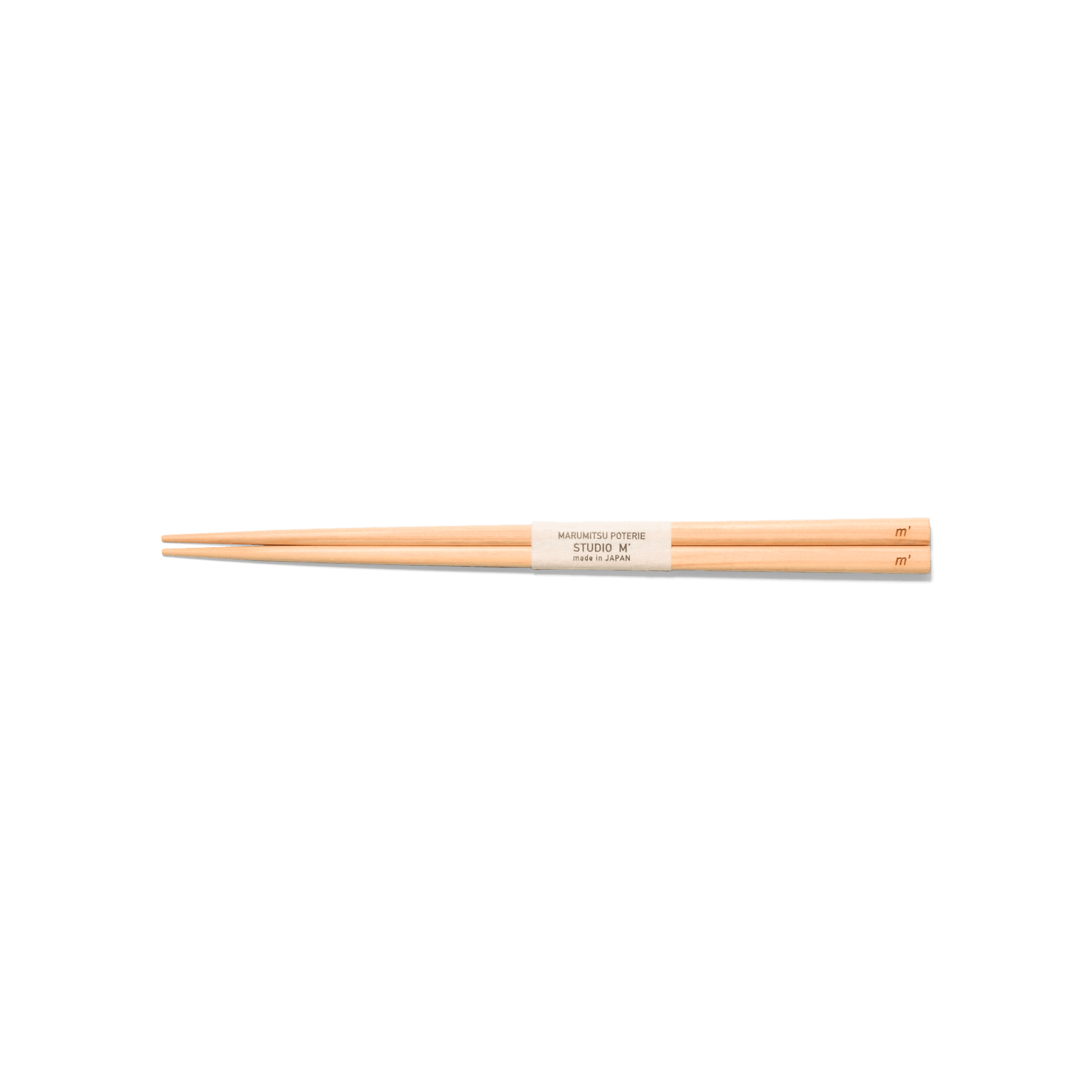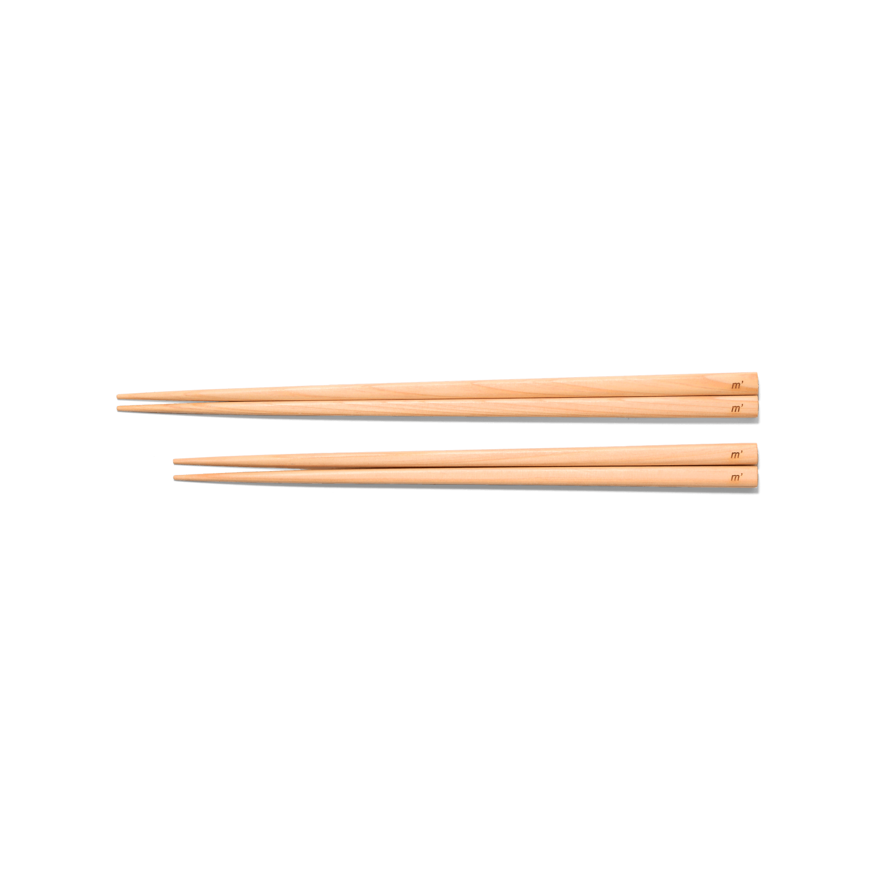 頭部分には「m’」の焼印を施しました。箸を並べた際に美しく見えるよう配置されており、さりげないアクセントになっています。