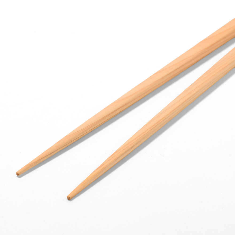 箸先は丸く、箸先とは反対側に向かって角のある四角形へと変化する形状です。やわらかさと適度なシャープさをあわせ持ち、全体にバランスの取れた印象に仕上げています。