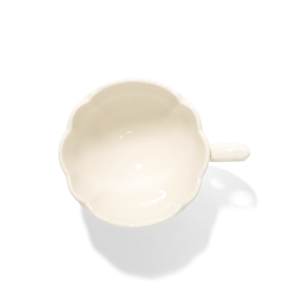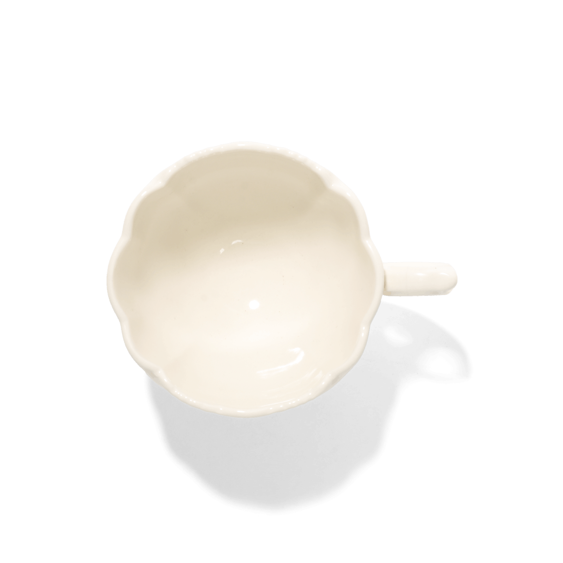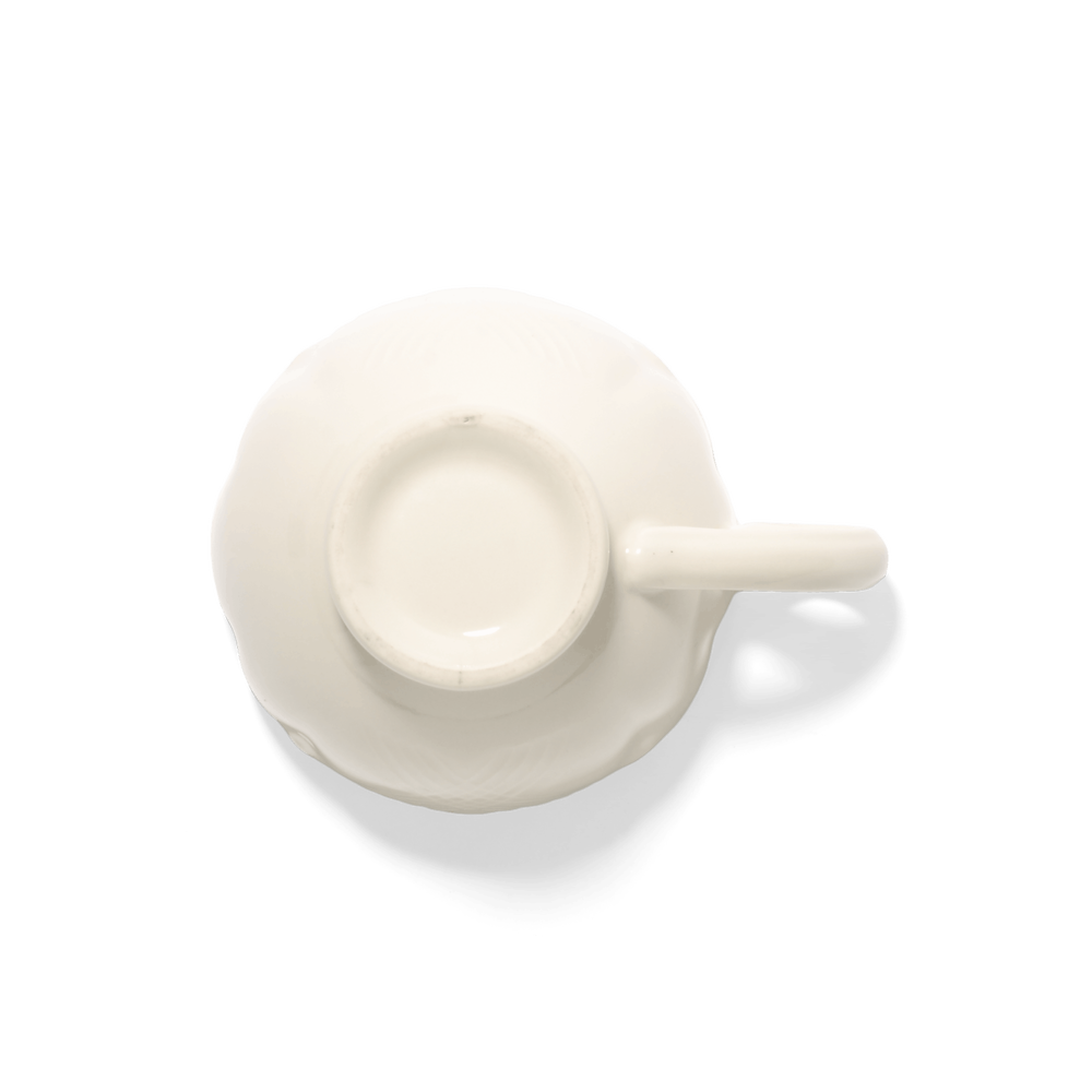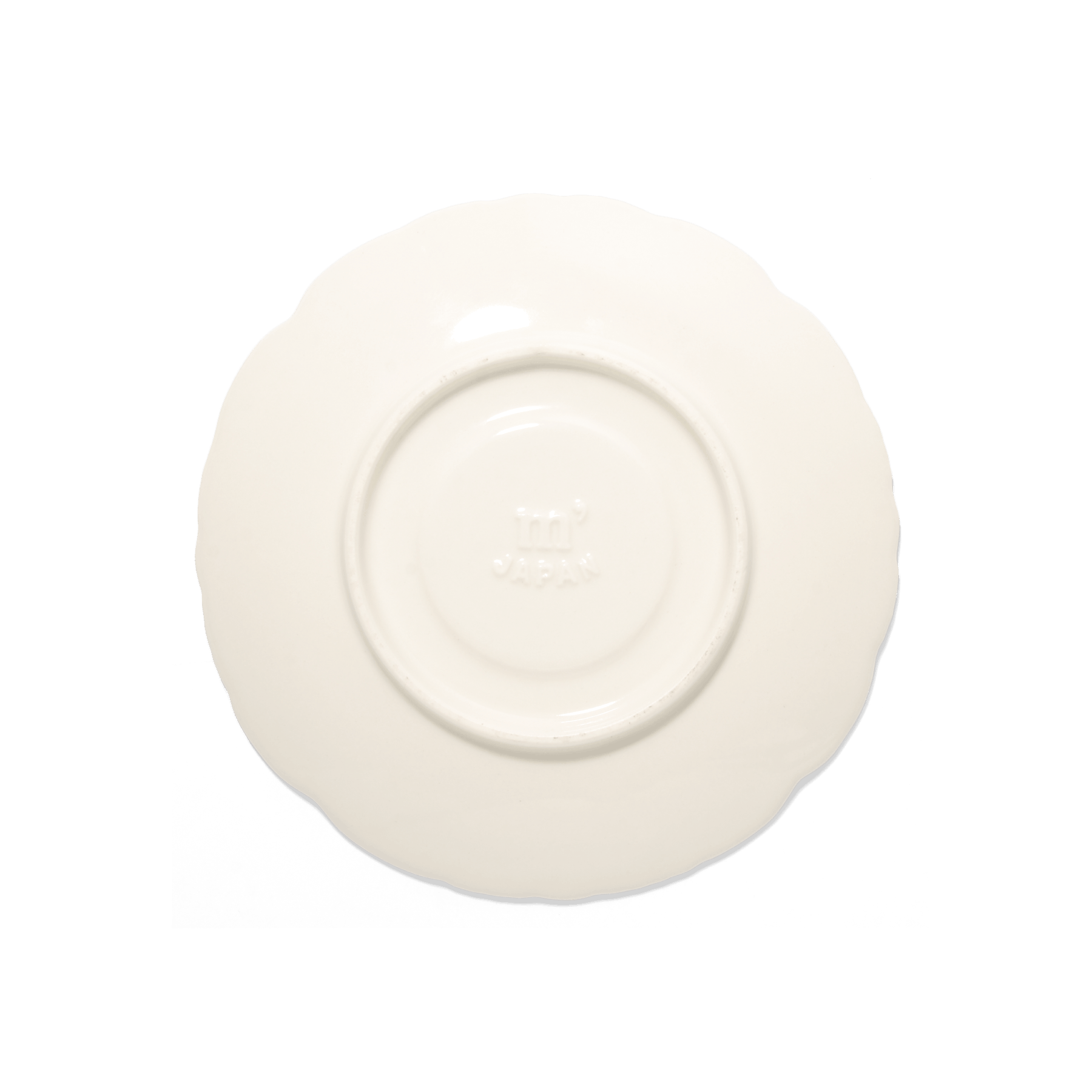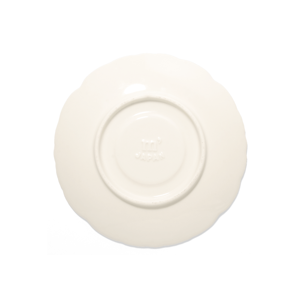 絵柄をあえて施さず、造形そのものの美しさを引き立てたデザイン。ぽってりとした花リムに重なる繊細なレリーフが、やわらかな陰影を生み、白の中に豊かな表情をもたらします。