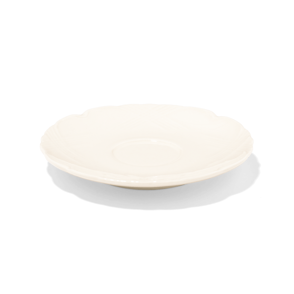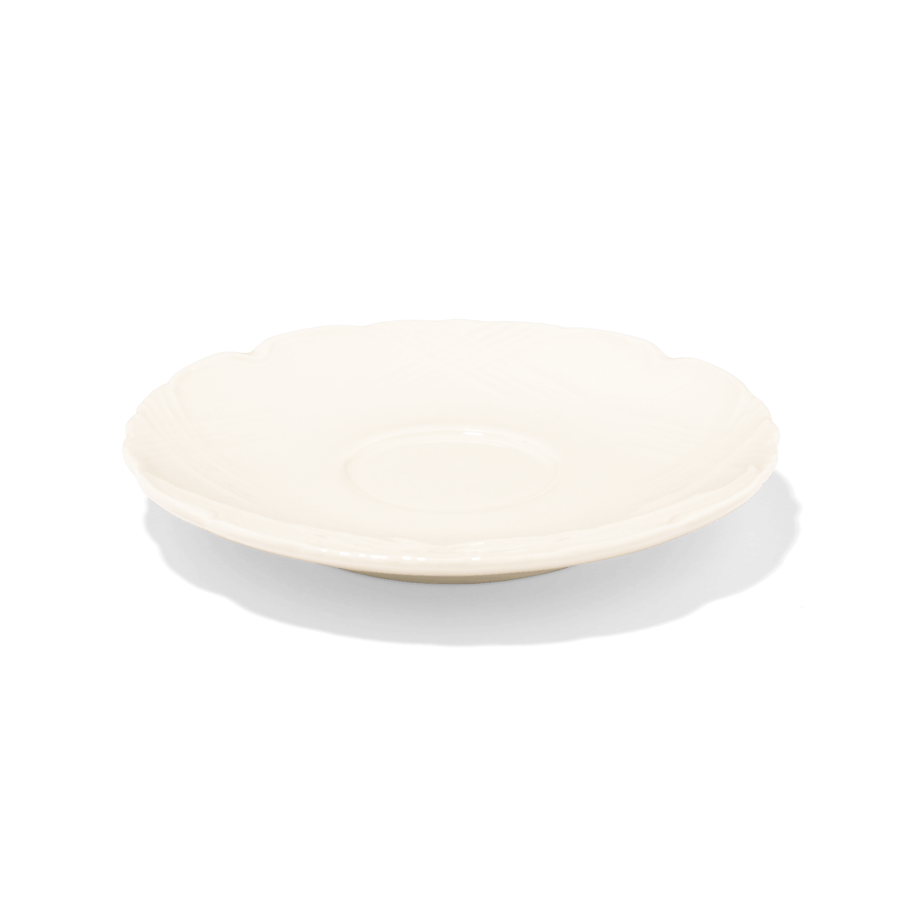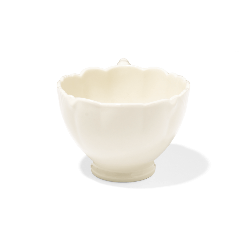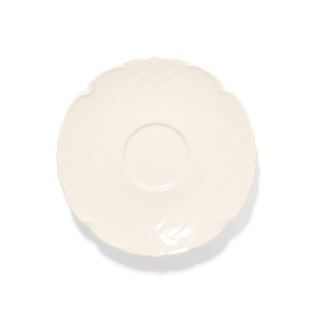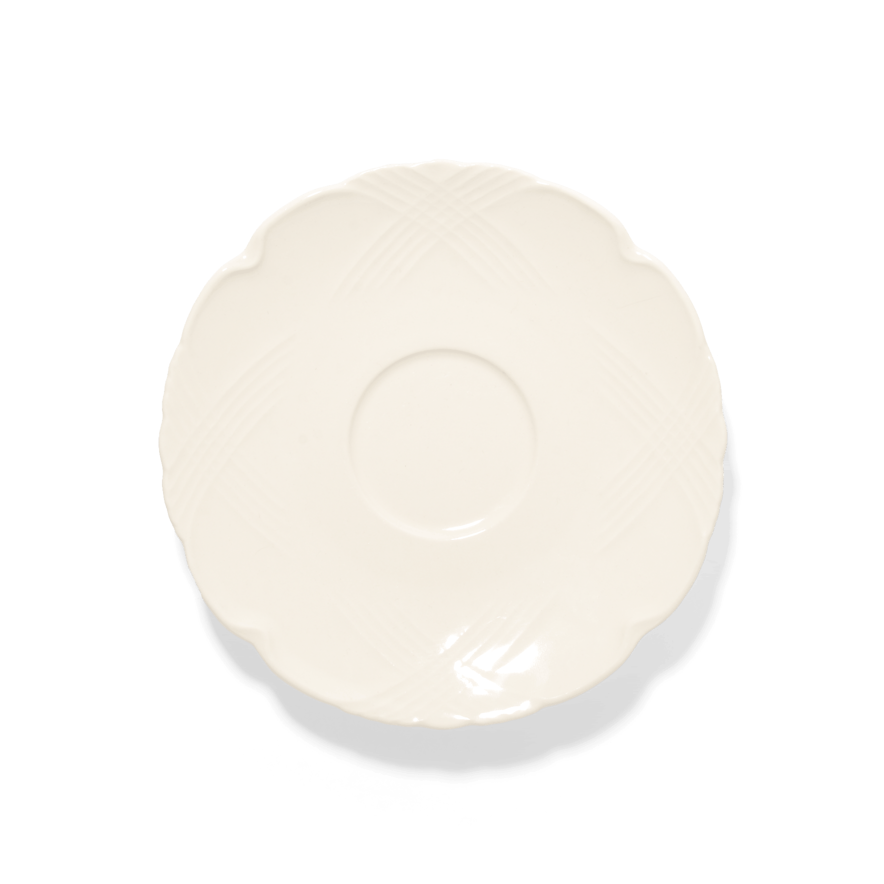 絵柄をあえて施さず、造形そのものの美しさを引き立てたデザイン。ぽってりとした花リムに重なる繊細なレリーフが、やわらかな陰影を生み、白の中に豊かな表情をもたらします。