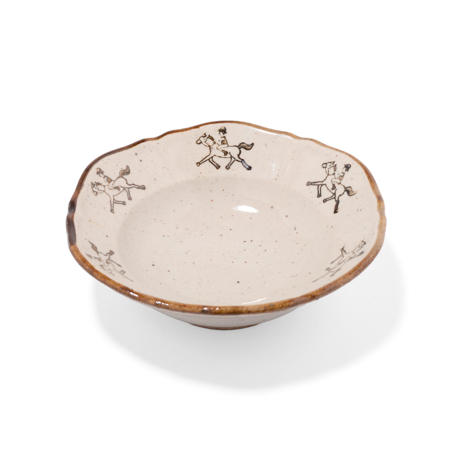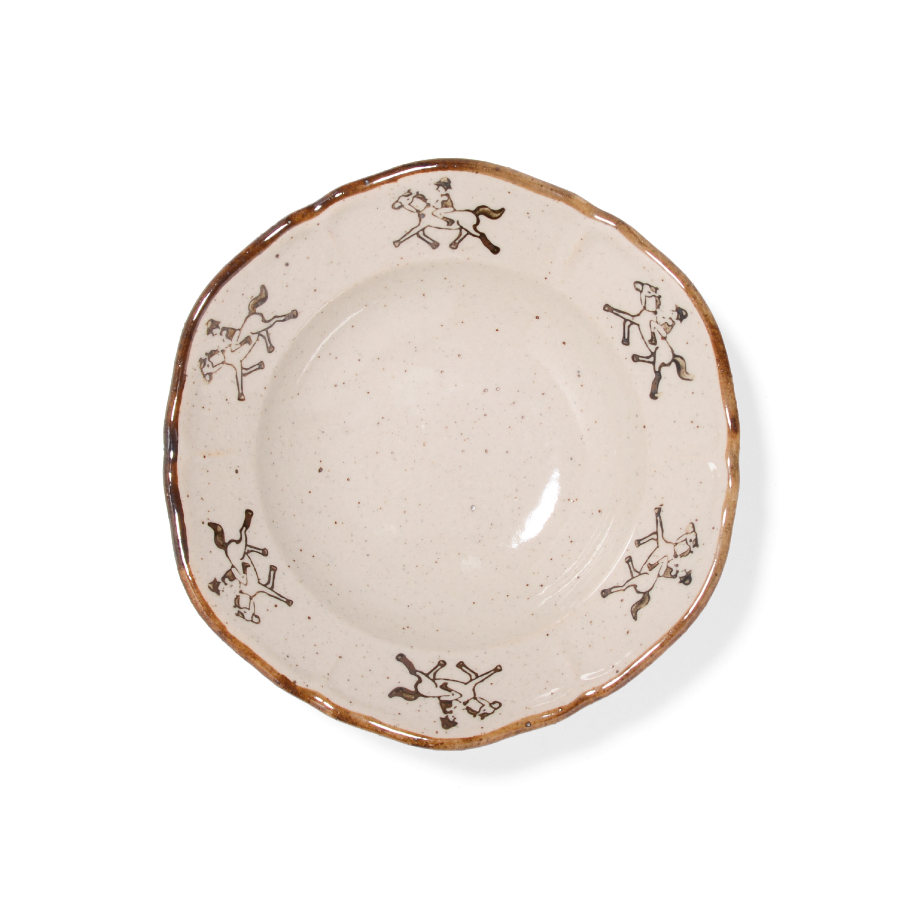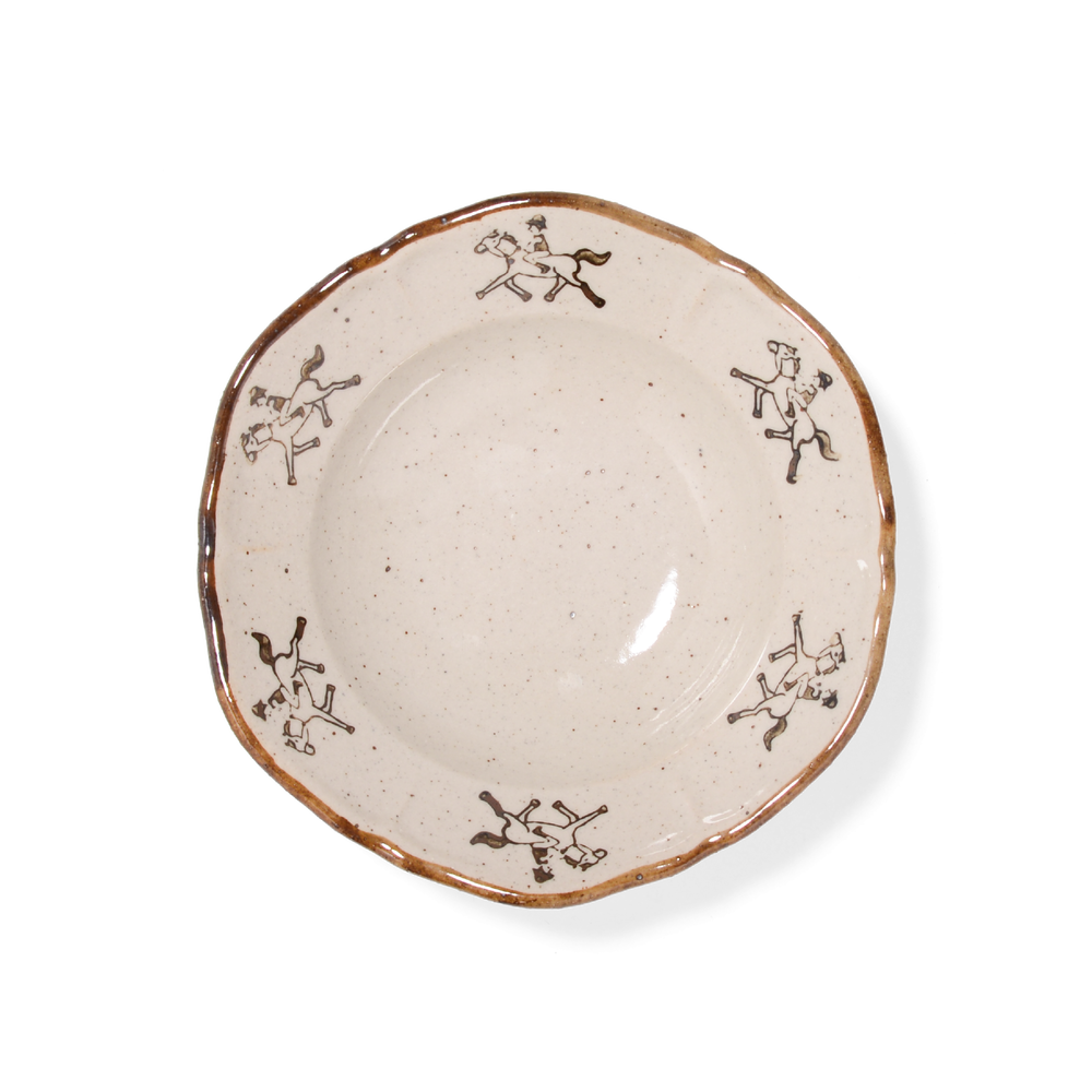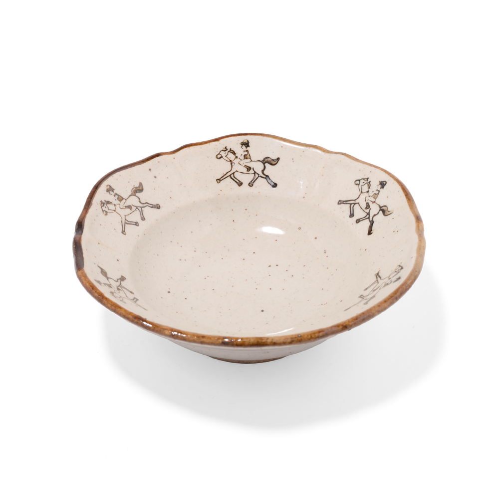 この器には、そんな馬が農夫を乗せ、農村を軽やかに歩く姿が描かれています。 絵付けのベースとなる「カシェ」は、コーディネートの幅を広げてくれる柄物の器。 無地の器が並ぶ中にひとつ加えるだけで、食卓に心地よいリズムと引き締まった印象を与えてくれます。